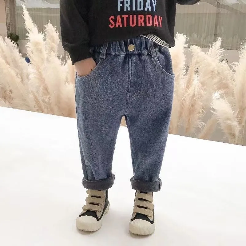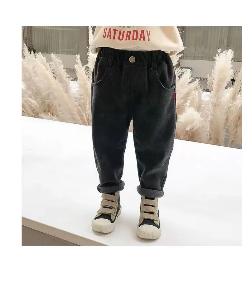 1-7 Yrs Boys Unisex Plus Fleece Winter Pants for Kids Baby Thickening Warm Soft for Girl Children Stretch Fleece Jeans Pants