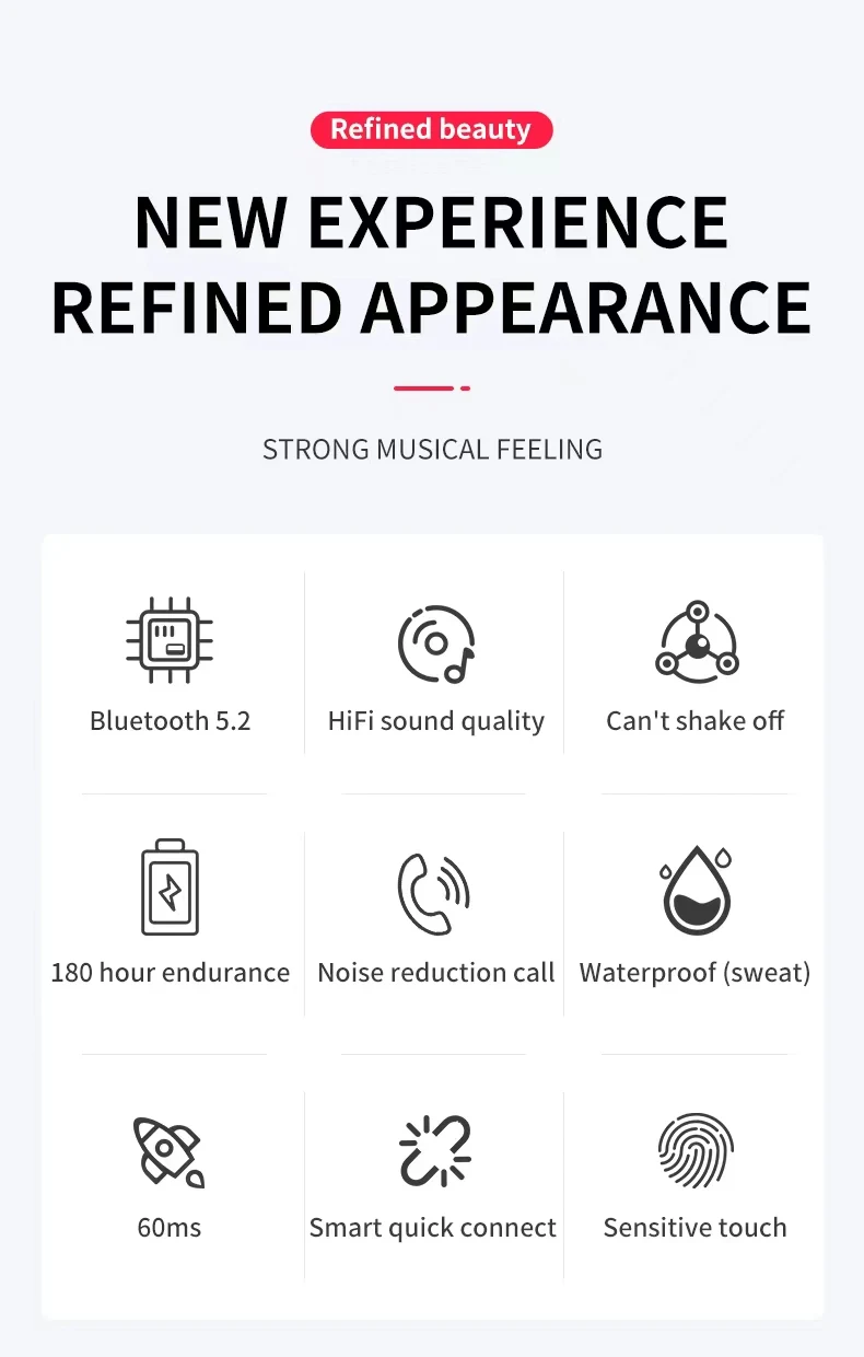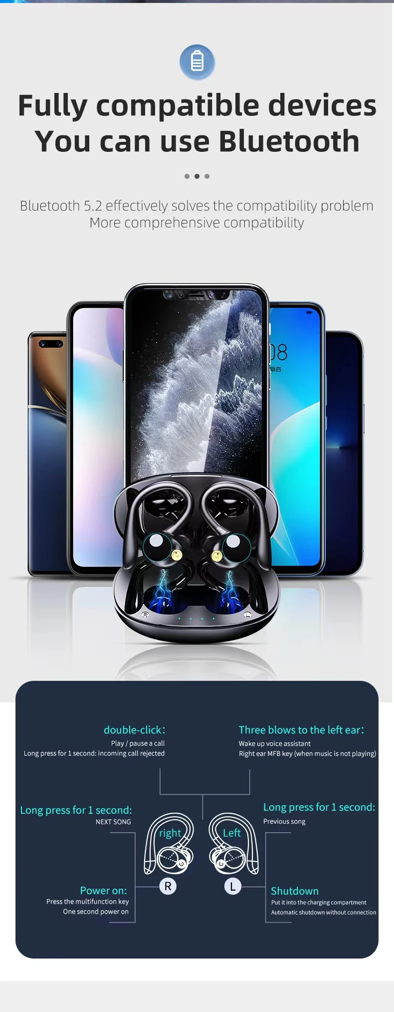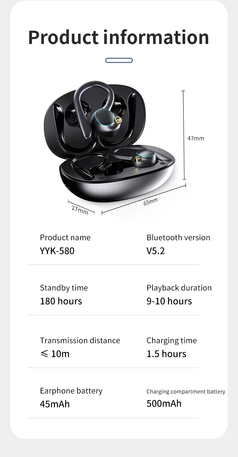 Best Selling Newest YYK-580 TWS Wireless Bluetooth 5.2 Earphones Headphones Sports Earbuds Waterproof Headsets