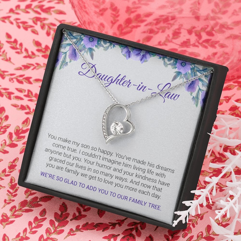 This dazzling Forever Love Necklace features a polished heart pendant surrounding a flawless 6.5mm cubic zirconia, embellished with smaller crystals adding extra sparkle and shine.