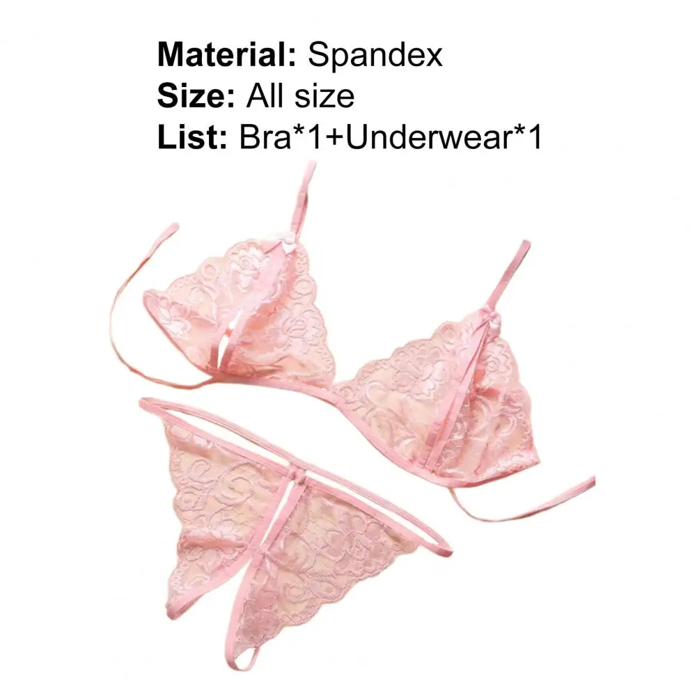1Set Underwear Suit Deep V Temptation Spandex See-through Bra Matching Panty for Girls