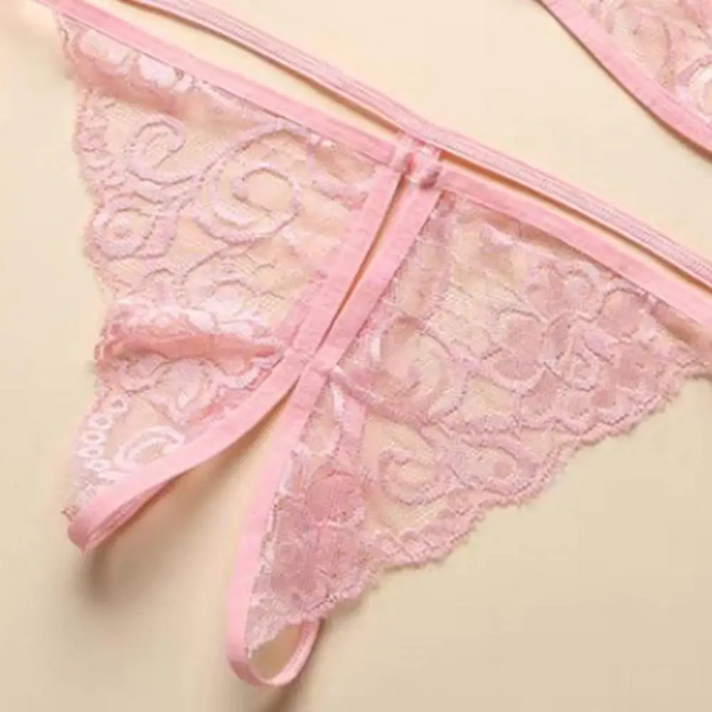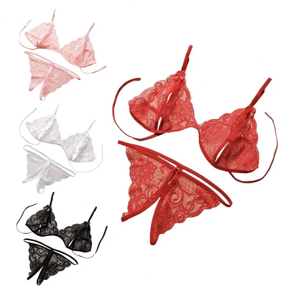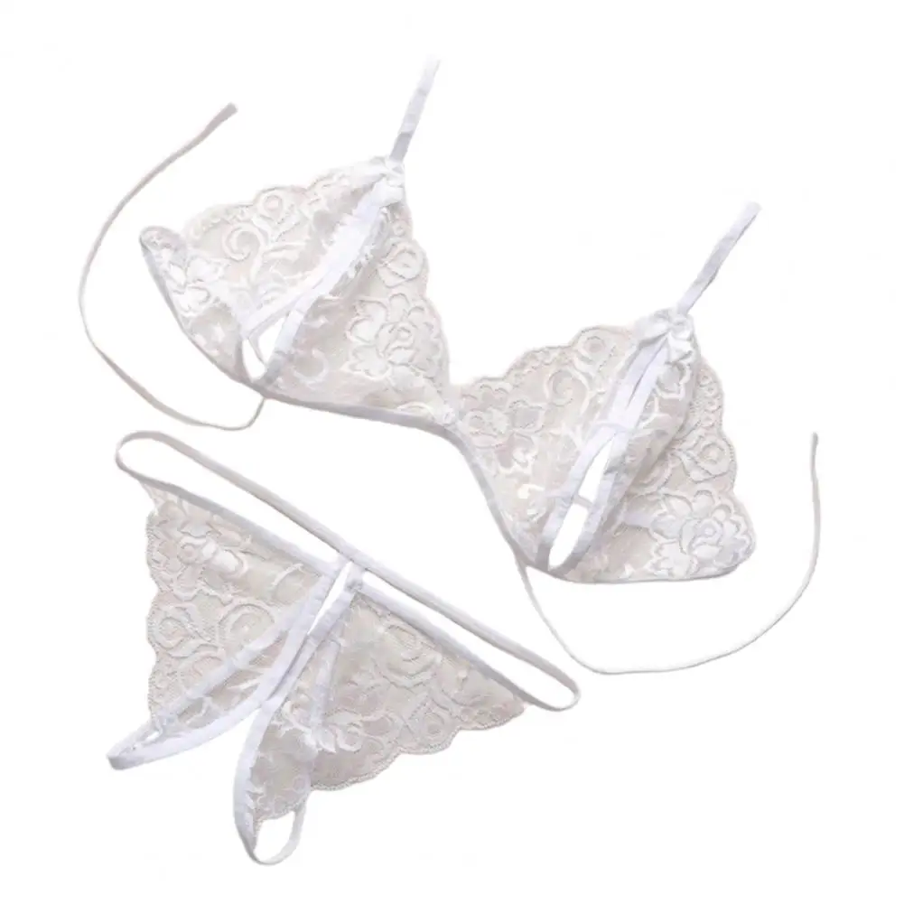 Exotic Lingerie Lace Babydoll Open Bra Set Sexy Mini Briefs Micro Thong Transparent Lace ltra-thin Sexual Panty Matching Bra