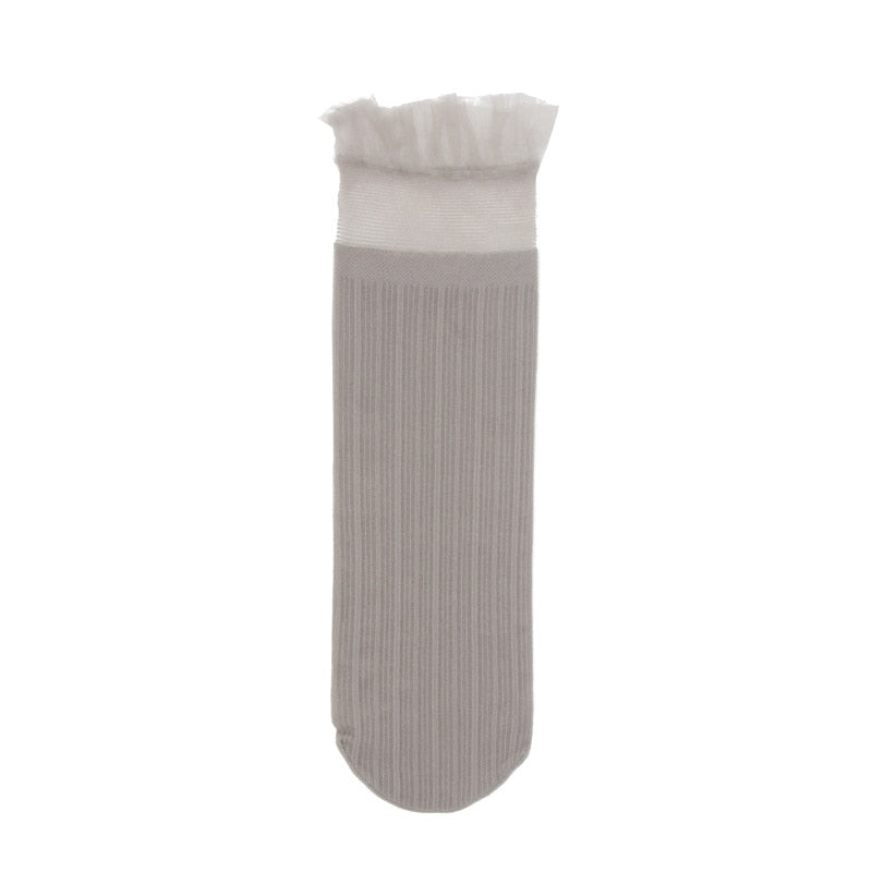 Velvet Woman Socks Ultra-thin Transparent Lace Frilly Ruffle Socks Women Fashion Summer Japane Style Harajuku Retro Long Socks
